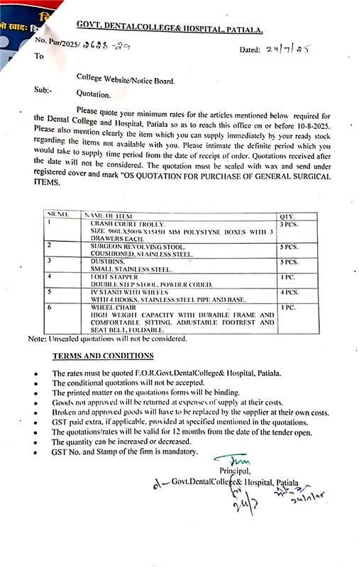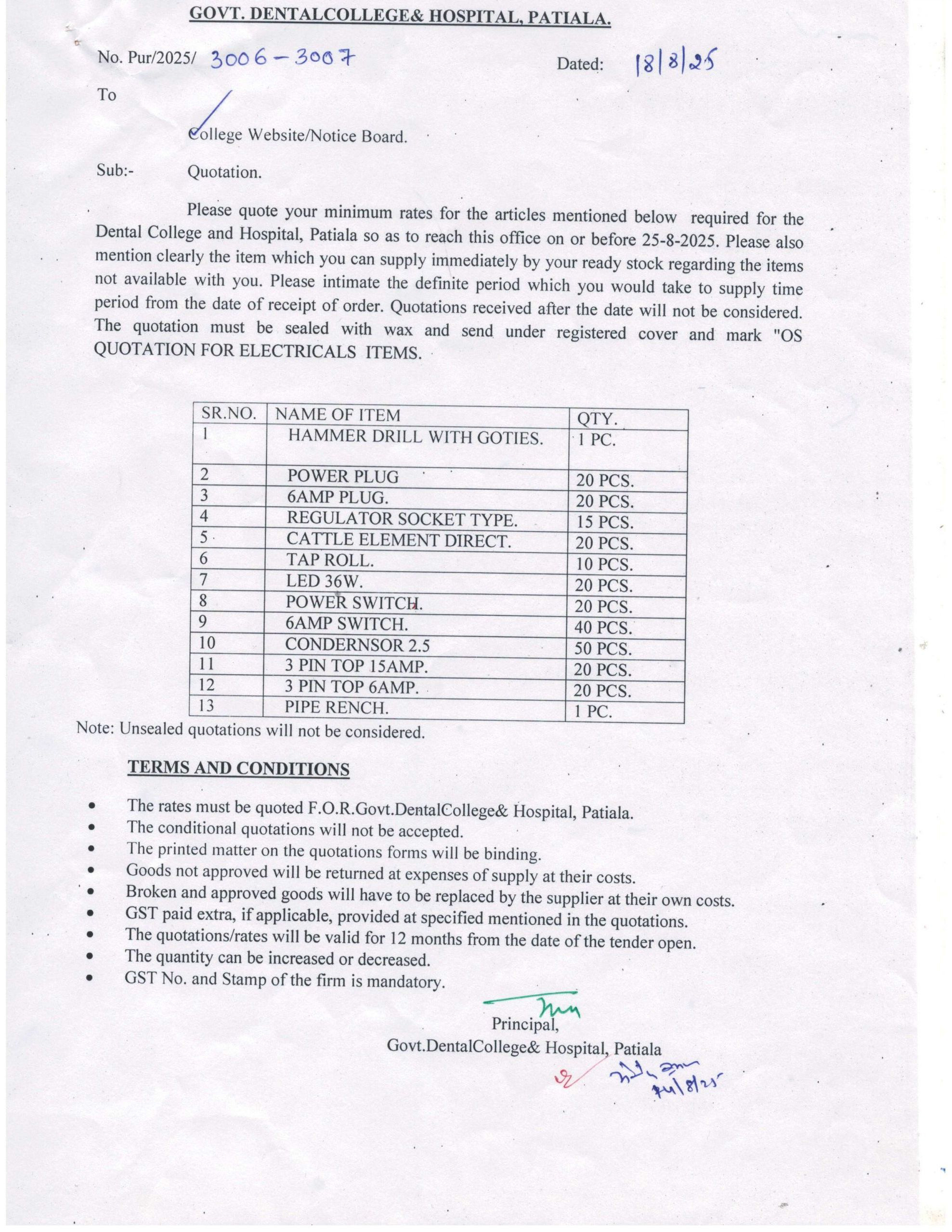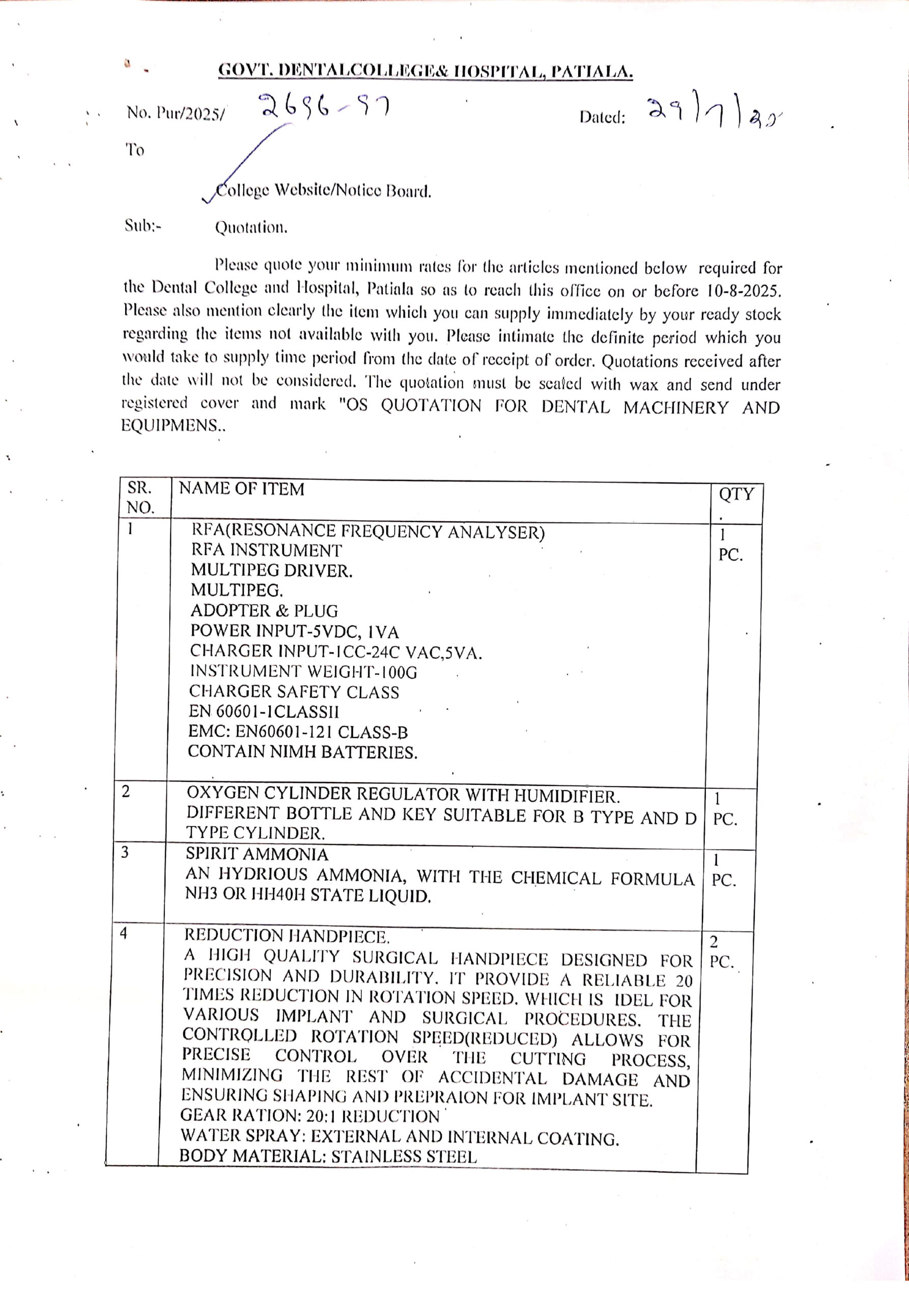 Qs Quotation For Purchase Of Emergency Machinary And Equipments
