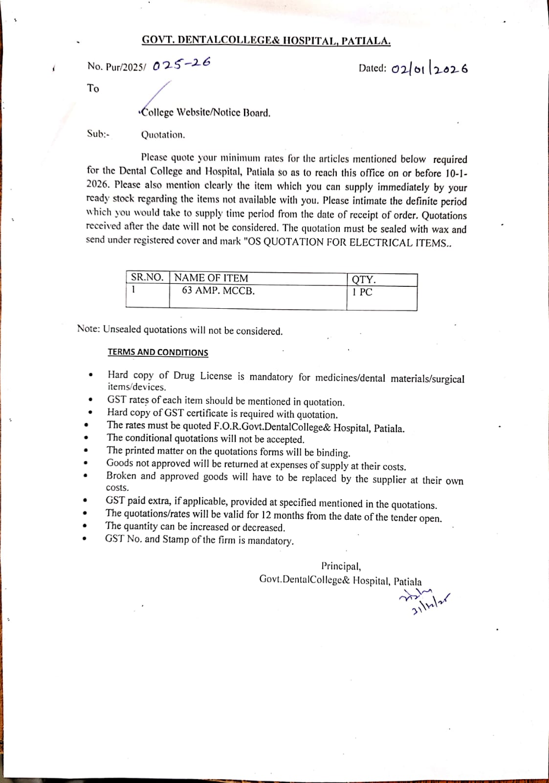 OS Quotation For Purchase Of General Surgical Items