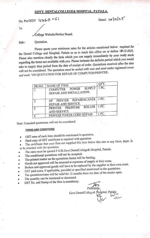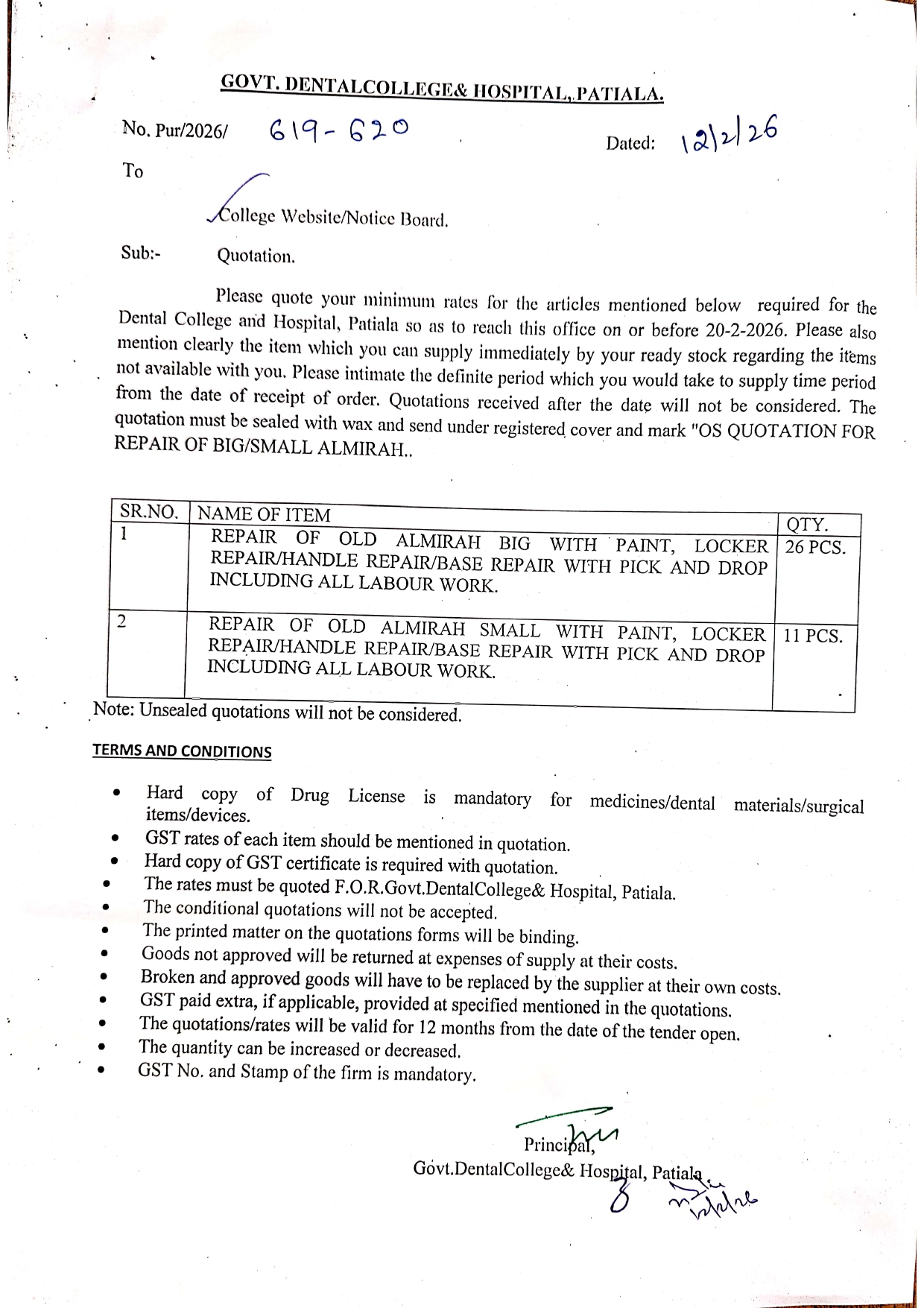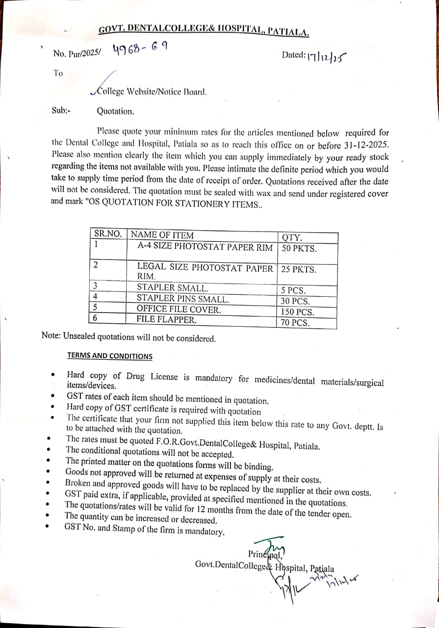 Oct 21, 2020 ->Quotation for “Raddi” of Old Newspapers, Magazines & other material.