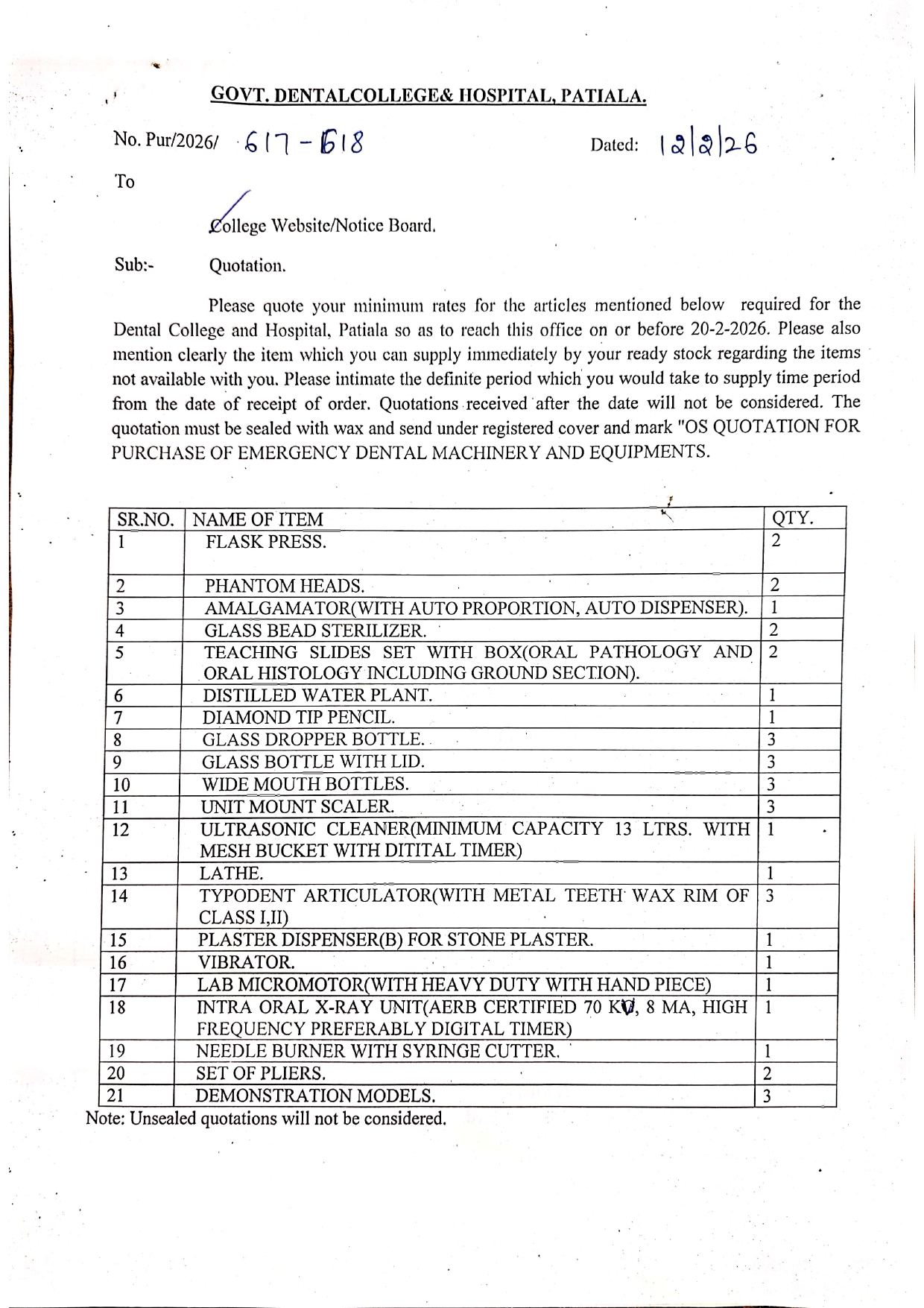 Quotation For Dental Materials