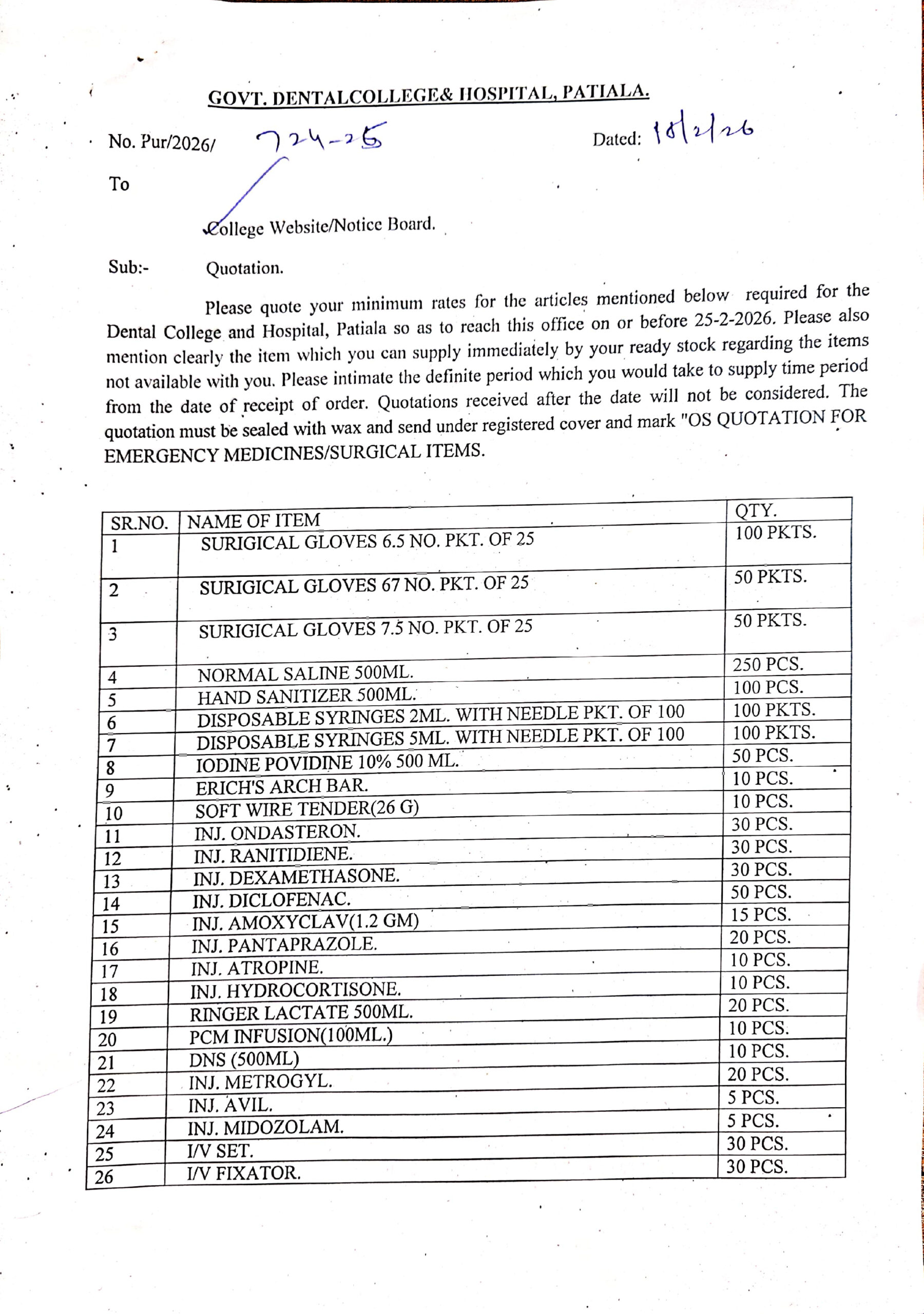OS Quotation For Purchase Of General Surgical Items