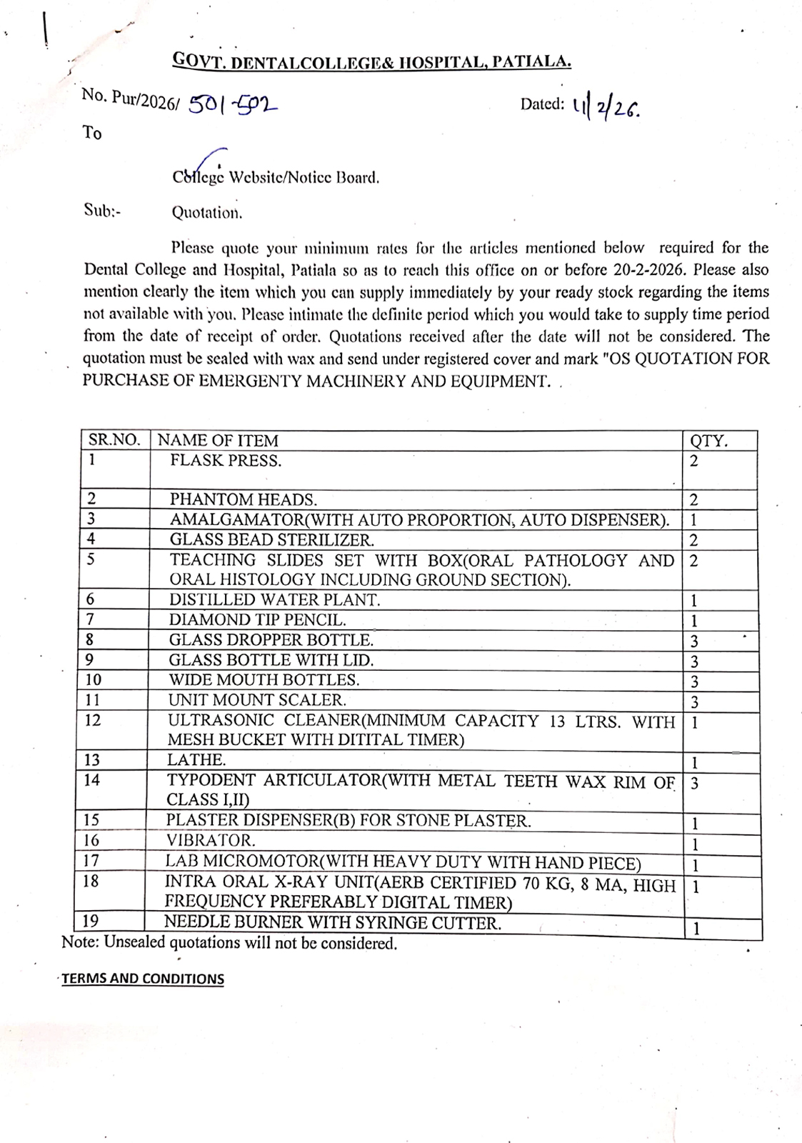 OS Quotation for Purcgase or Emergency Dental Machinery And Equipments